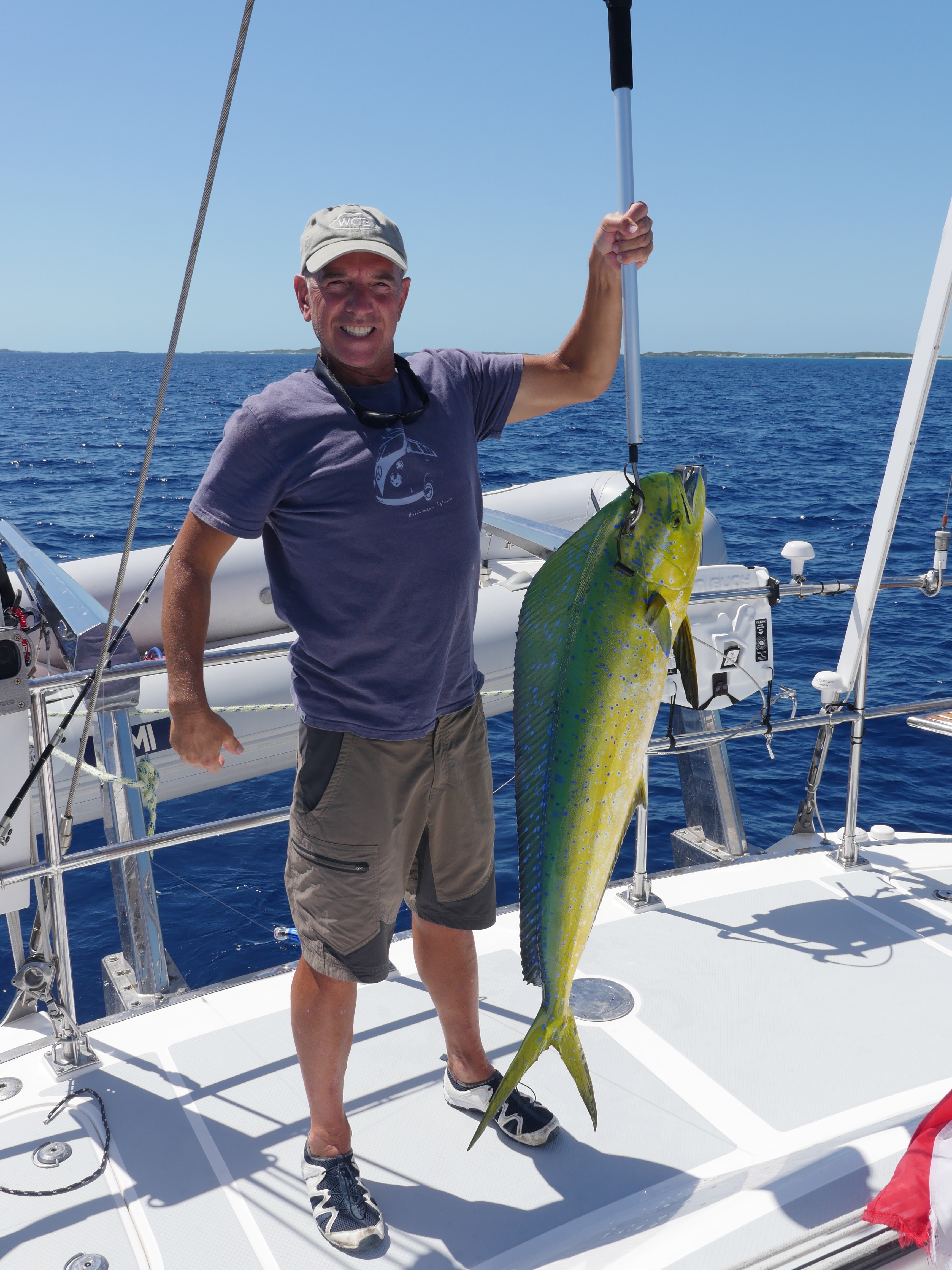 - Fishing is fun: We both hated fishing–couldn’t see the point of sitting on a river bank or beach with a hook in the water. But trawling a line or two from Gen’s stern allows us to (occasionally) capture wonderful, exotic, huge sea creatures from the ocean, and eat them. The odds are definitely on the fishes’ side–we lose a lot of fancy lures–but like Pavlov’s dogs, we are starting to get a salivating thrill from the sound of the reel running and the sight of a colorful fishy beast jumping at the end of the line