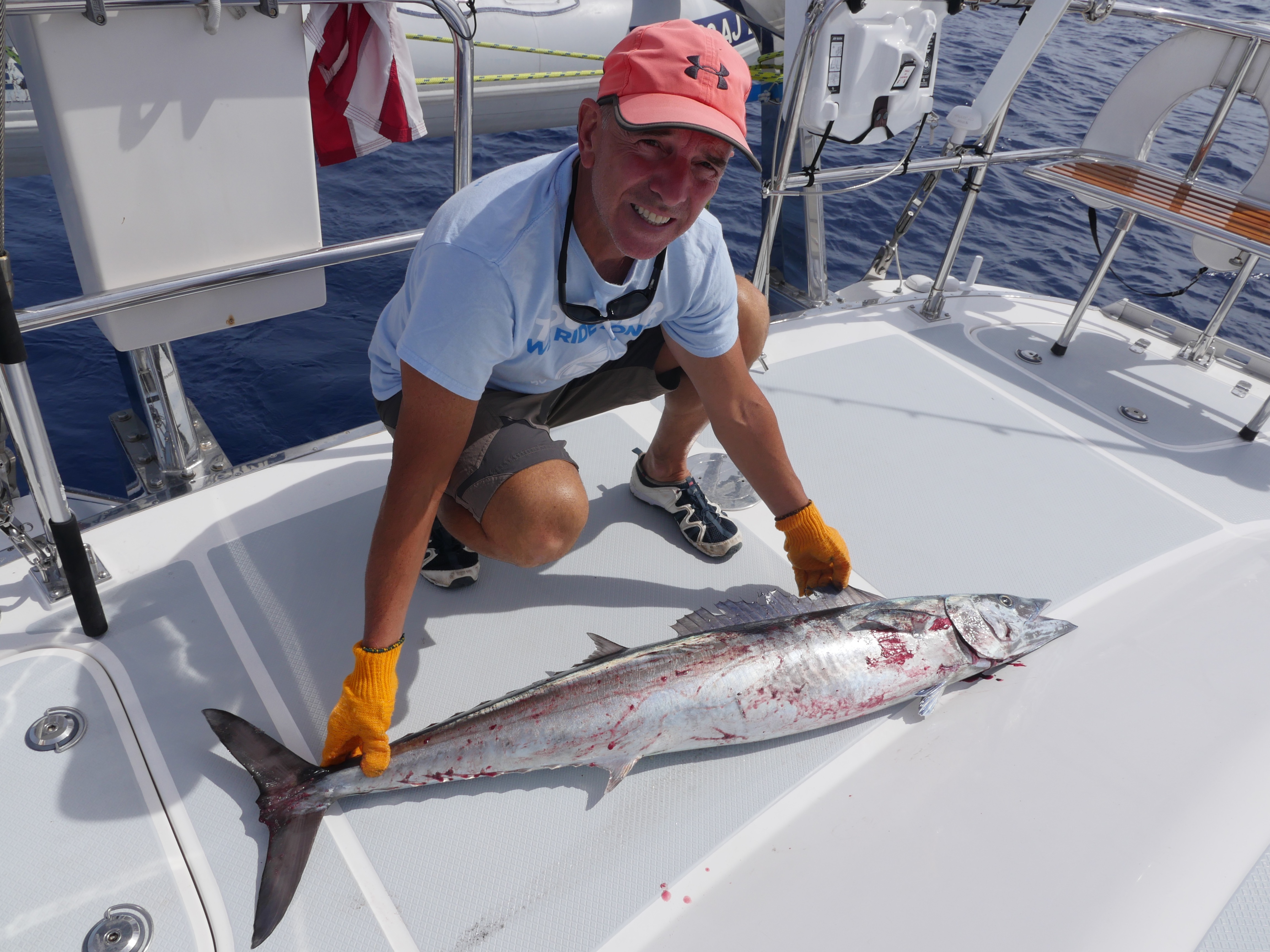 So you wonder, what do we do all day? Well having guests kept us busy showing the folks the sights. Between visitors we slowed the pace a bit (!) and sought out lovely places and sometimes stayed put for a couple of days. We did our boat maintenance chores (not an insignificant amount of time), read, swam, snorkeled, hiked. We watched the entirety of The Wire and reprised Downton Abbey from series one. Of late we have put some effort into going out to the drop off where the depth goes from 150 ft to 2000 ft in an instant. This is where the big fish hang. But we have had only mild success as the days it’s most appealing for us to go out to the depths to hunt, i.e. sunny and calmish, is just the conditions that fish don’t like. They prefer overcast and roughish to do their prowling. But we are determined that the mother lode of wonderful fishing lures that LeeAnn and Murney brought us will not go to waste. We have had more success with lobster hunting, some really big crustacea have caught the end of our Hawaiian slings and have ended up on the grill or in lobster linguini.