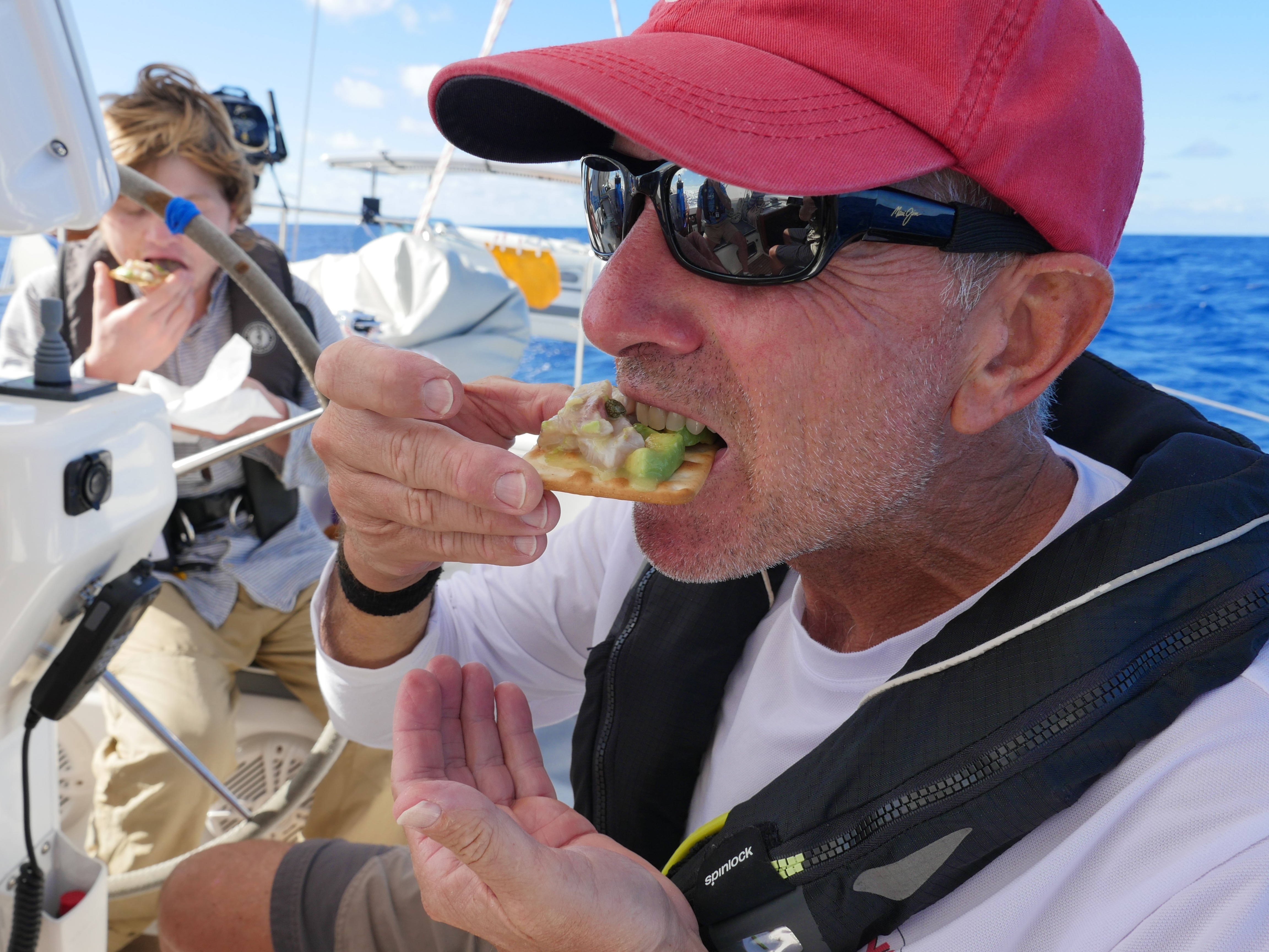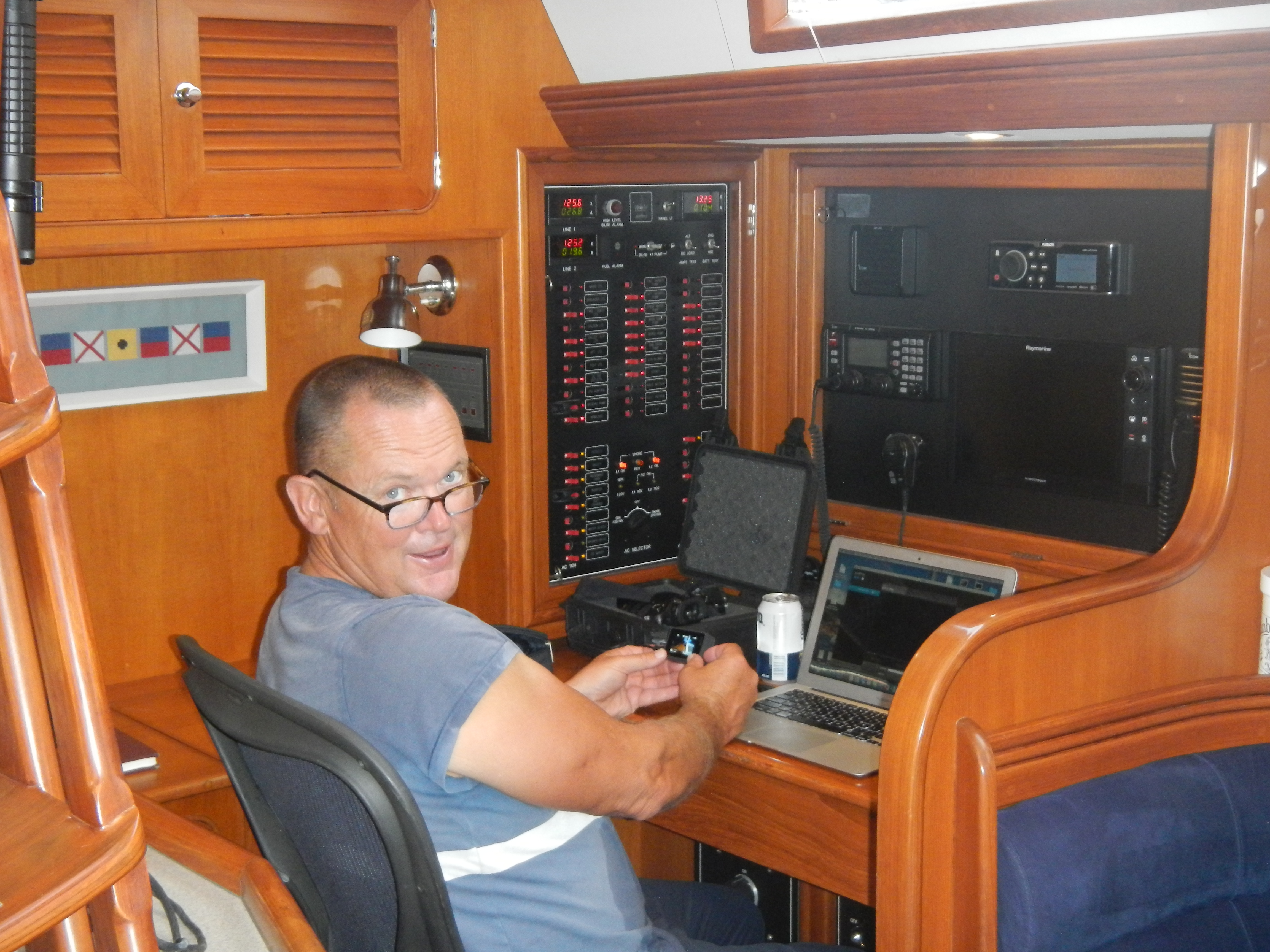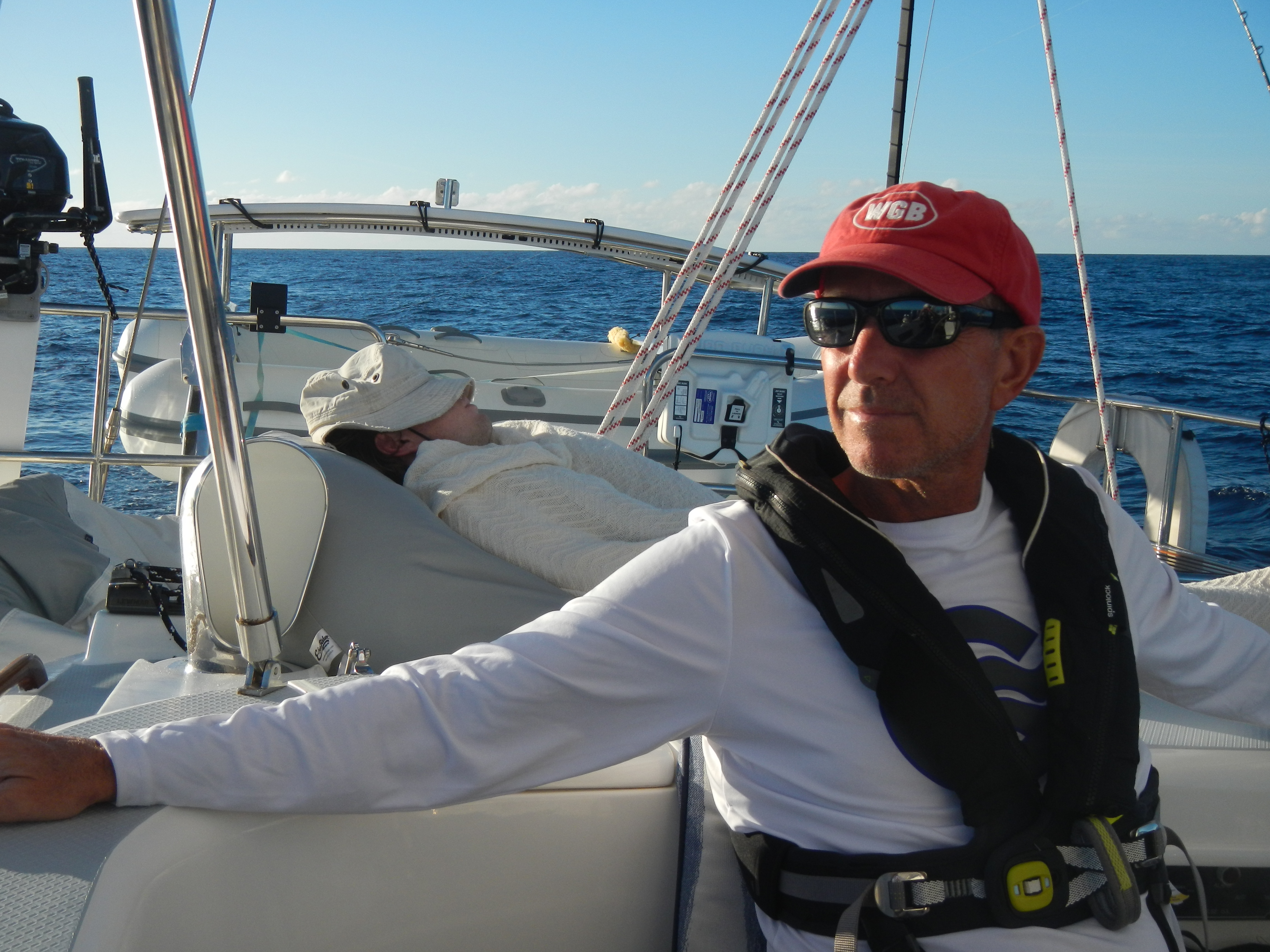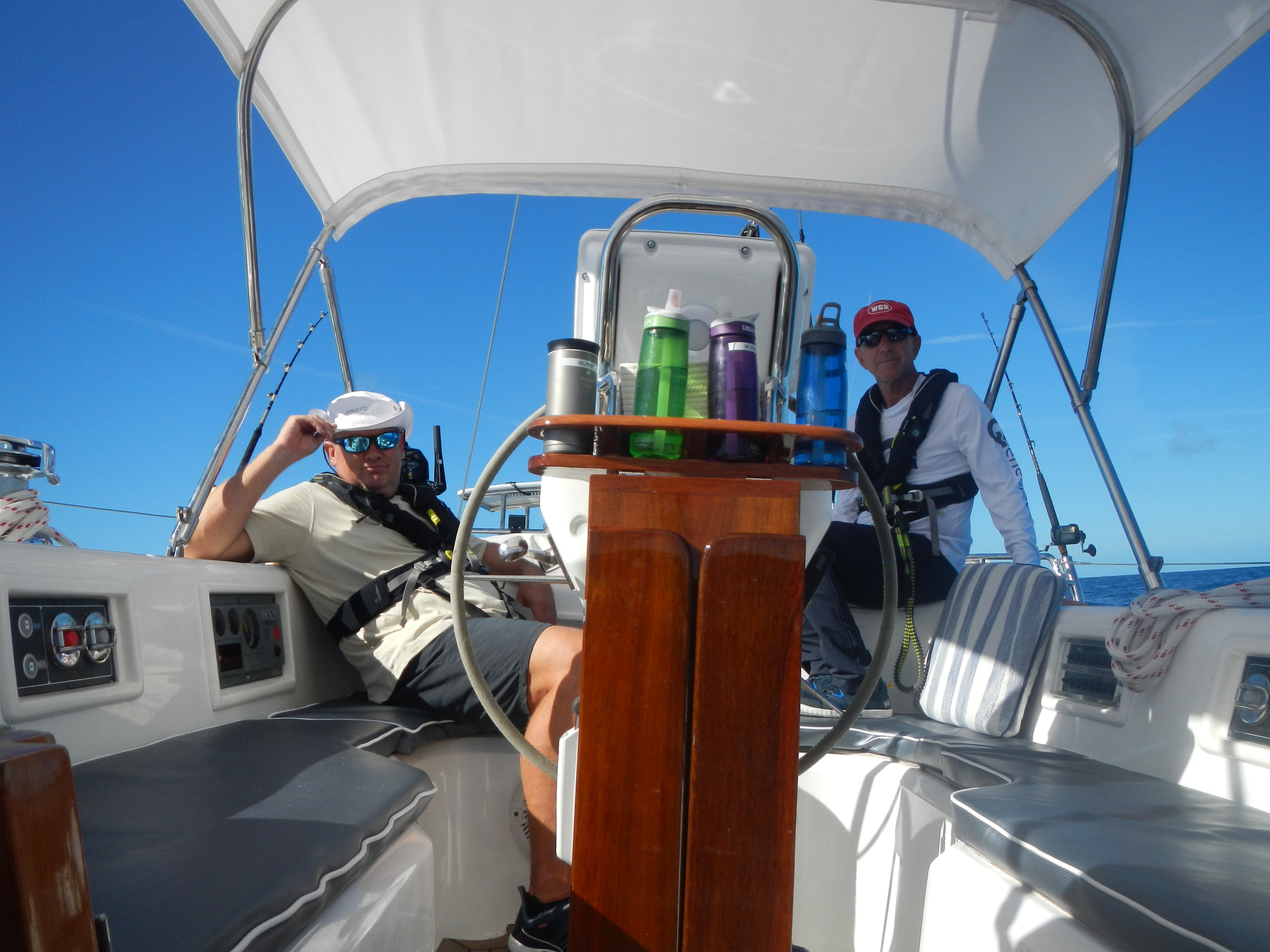 Jonathon quickly showed up the old guys by diving deep into Gen’s new state-of-the-art electronics suite, discovering features and layers that Baby Boomers were never meant to find.  He customized the system so that we could basically sail her via a blue tooth-connected cell phone.   We named the new auto pilot “Harrison”  (Hands-Free Solo) who did an amazing job keeping us on a steady course and away from the drudgery of the wheel.