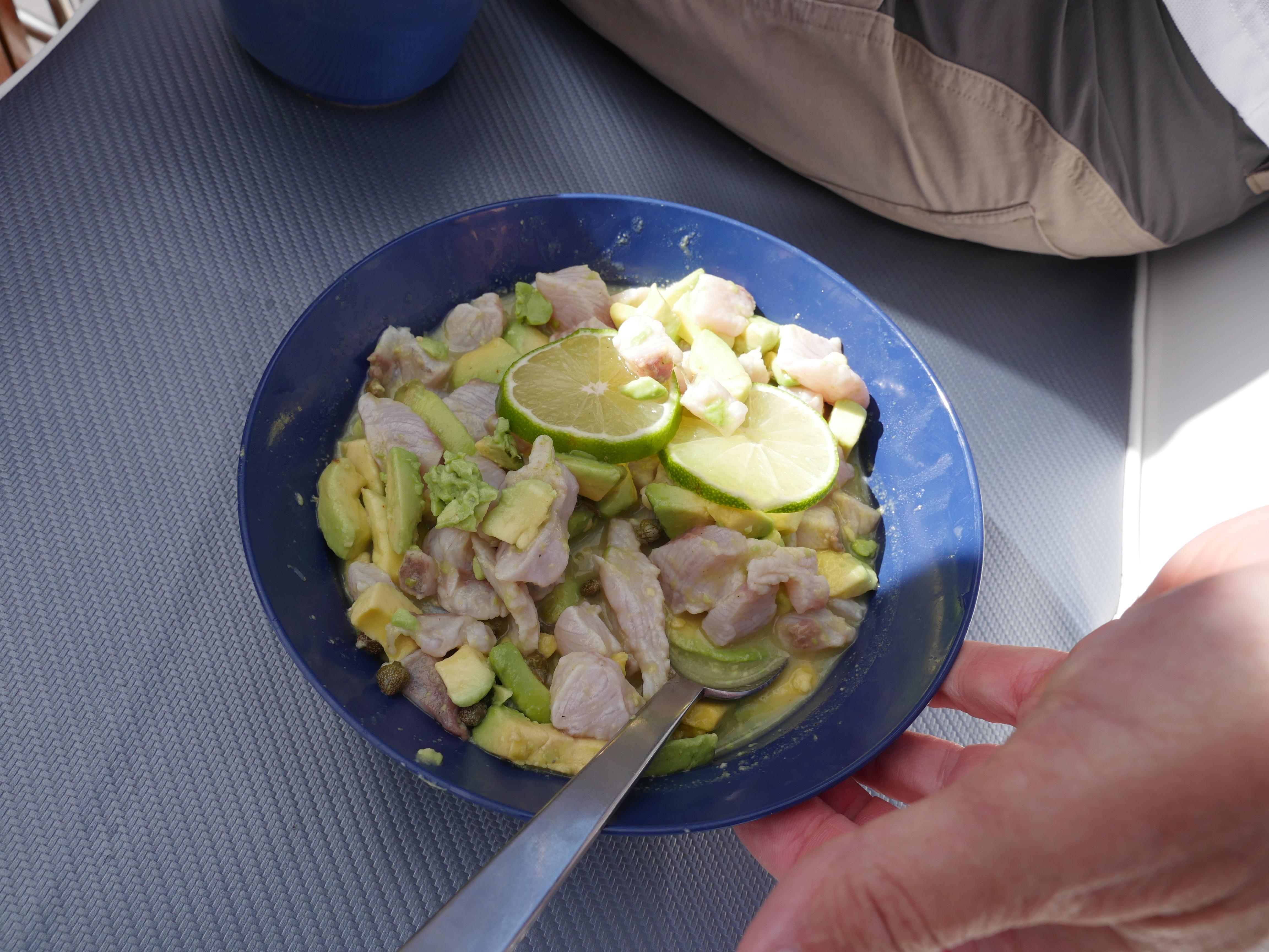 We threw lines over the transom and soon caught a medium sized Mahi Mahi, which immediately became ceviche lunch.  Then the engine stopped causing mild panic, but a filter change solved that.  Then we discovered an engine oil leak which caused medium panic, but we found the cause and realized it was minor and manageable.  The generator also stopped working, which meant we could not make fresh water, but we fixed that too.  All these minor issues did make us remember that we were really alone and necessarily self-reliant out in the big ocean.  We were just tankful no medical emergencies arose…