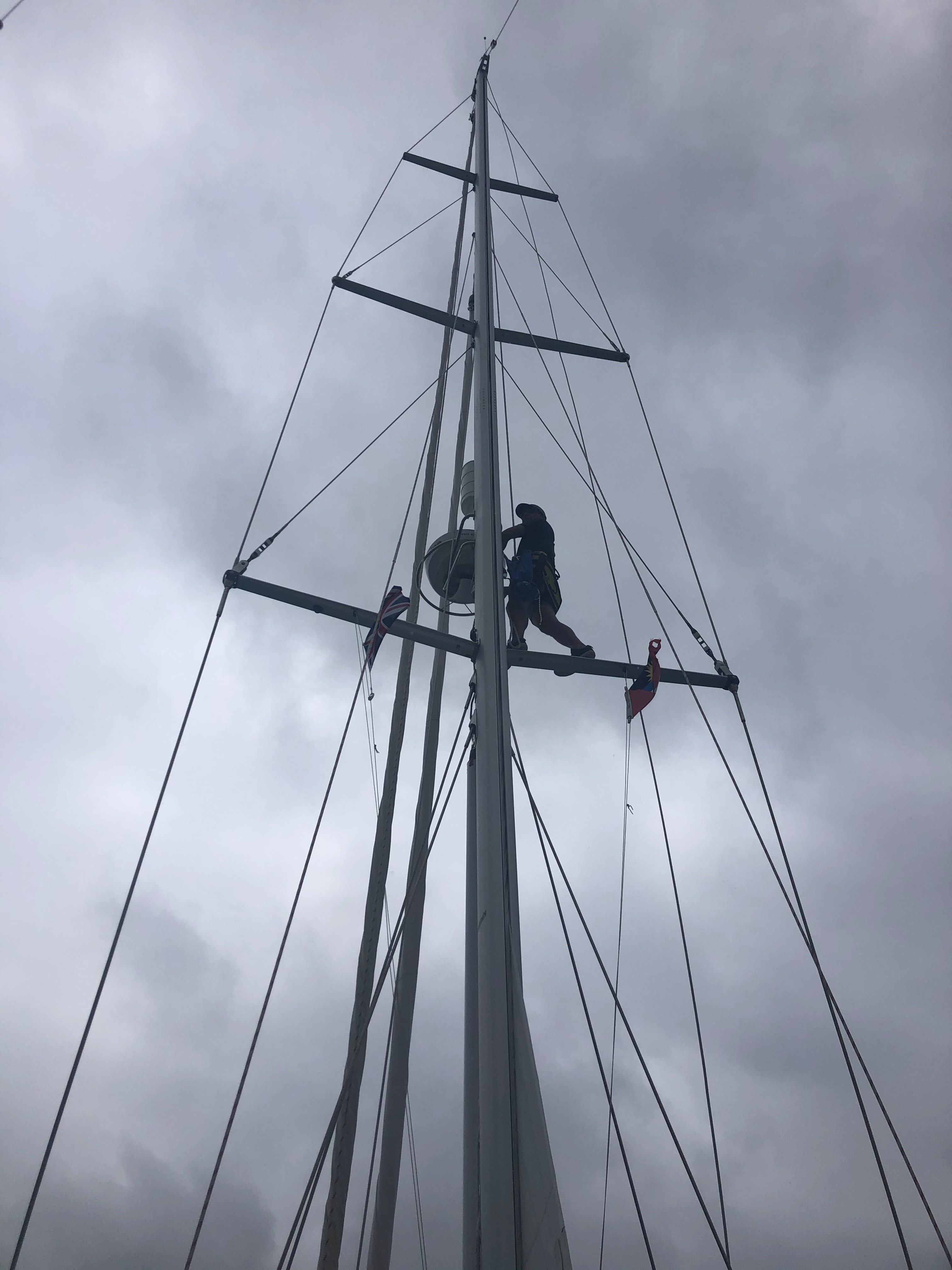 After two days of hot, hard work in the boatyard, Genevieve was ready for the water and she–and we–were delighted to get her bottom wet and take up residence in a marina slip with power and air conditioning on-tap.  Slowly, all the removable parts, sails, canvas, etc., we had removed last season were put back in place and the systems were checked, including our rebuilt Fischer Panda generator (thanks Wesley of Multiserve!). Within a week we were shipshape, inspected, operational, polished, and waxed.  We unplugged, slipped the lines and headed out of Falmouth Harbour for a shakedown cruise back to some of our favorite haunts in Antigua.  Then we sailed to Barbuda, closed to us last season, to explore the flat but oh-so-lovely island recovering fast from the hurricanes, as evidenced by the amount of high-end real estate developments being planned.  These, like the ones before them, will get built, lure the glitterati, and get blown away.  Rinse, repeat.