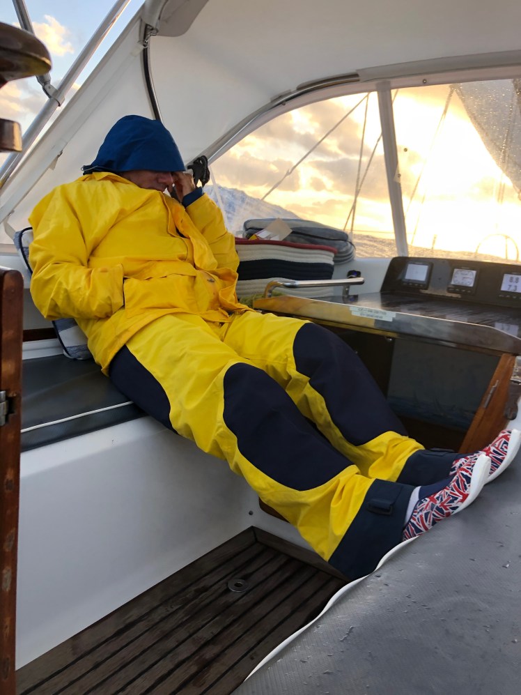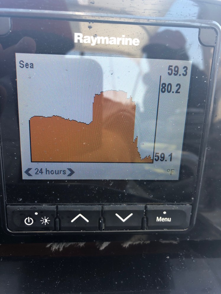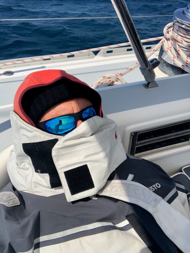 Ship traffic was more or less nonexistent, just a couple of distant AIS signals that did not make it over the horizon. We passed the time tweaking sail trim; listening to chill vibes, country, disco, pop; eating great food (thanks Lisa!); discussing the world’s problems; fighting over the cockpit fleecy blanket; counting meteors at night; telling yarns and jokes; and fishing, still without success.